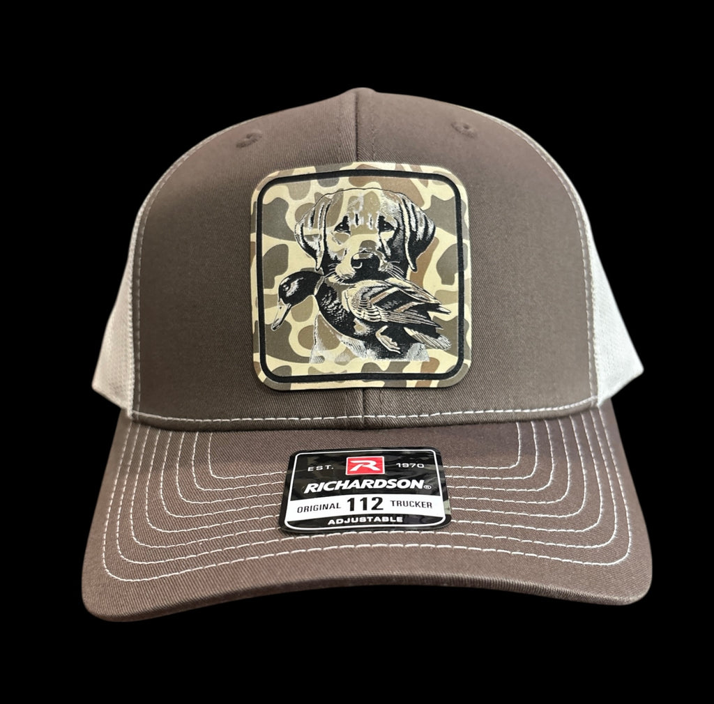Lab Duck Hunting Square Duck Camo Premium Leatherette Hat
